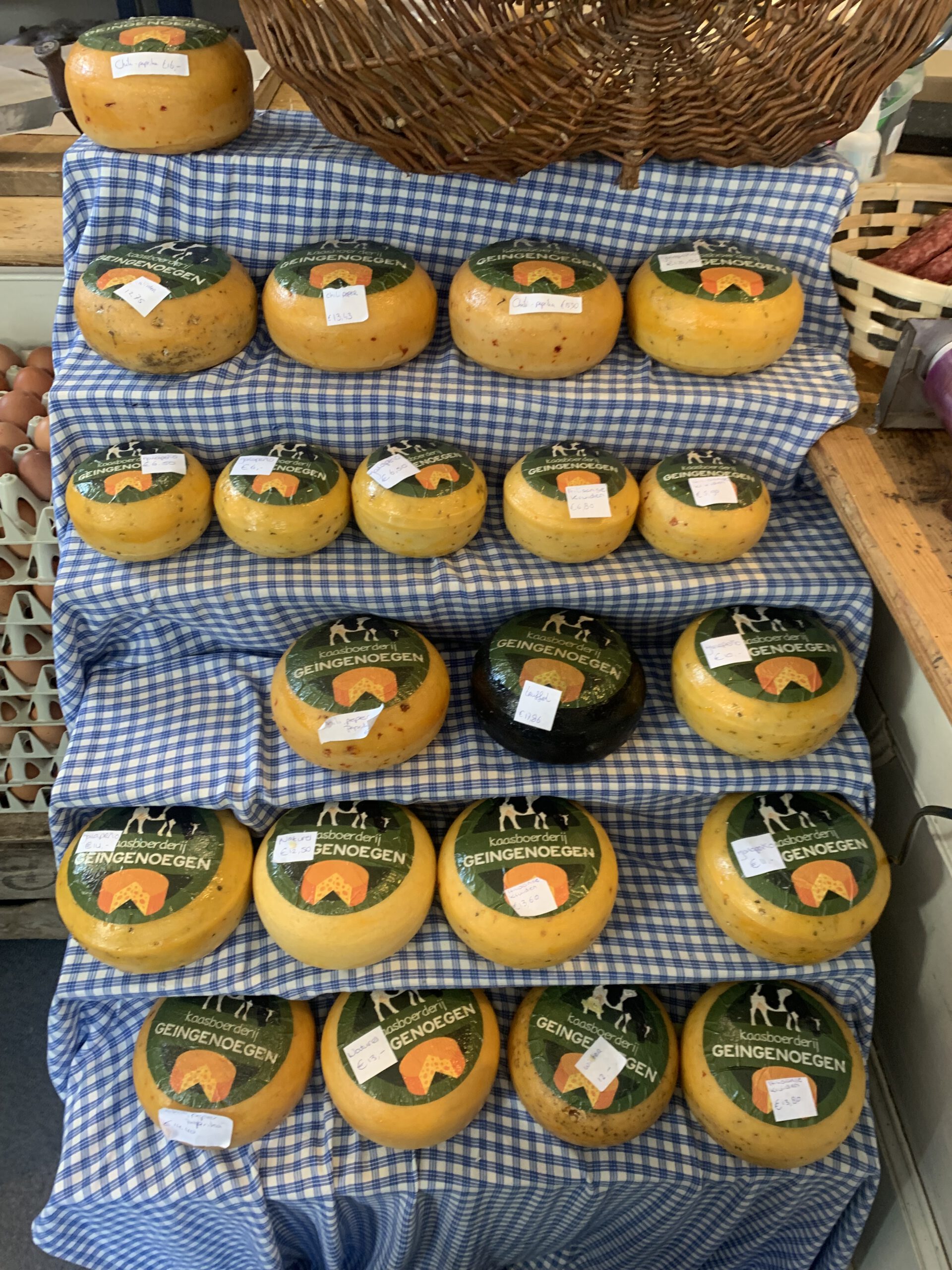 [15:00] We rijden het terrein op van een rustig gelegen kaasboerderij. De boerderijwinkel bevindt zich aan de zijkant van het gebouw. We lopen naar binnen en de vriendelijke mevrouw achter de balie vraagt of ze ons kan helpen. Maar wij besluiten om nog eventjes rond te kijken, want we zien zoveel soorten kaas! Door het raam van de winkel spotten we de kaasmakerij; er is een grote ronde ton te zien waar alle kaas in wordt gemaakt. Dan loopt de kaasboer via de deur van de kaasmakerij de winkel binnen. Max vraagt hoe de kaas wordt gemaakt en we maken even een praatje met deze meneer. Erg aardige mensen en we nemen de lievelingskaas van de boer mee: Fenegriek. Een milde kaas met een nootachtige smaak. Op hun website kun je verder lezen hoe de kazen worden gemaakt en vind je het hele kaasassortiment.